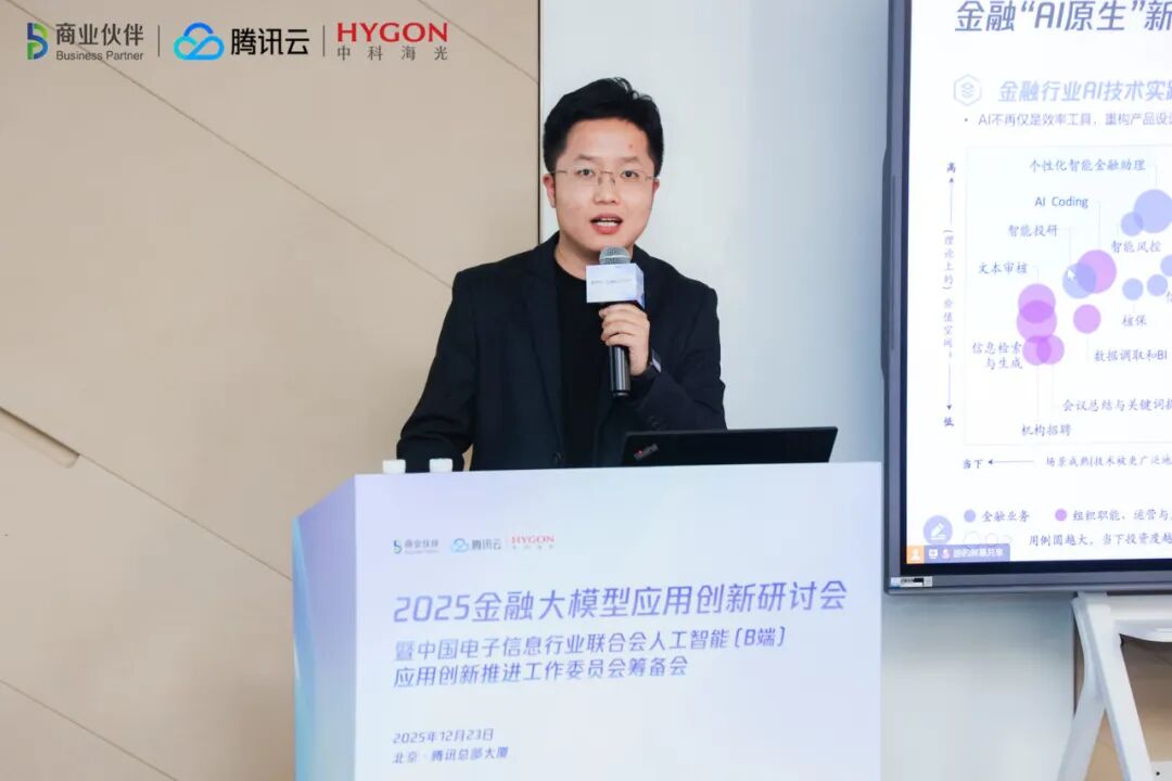 12月23日,中国电子信息行业联合会人工智能(B端)应用创新推进工作委员会筹备会暨2025金融大模型应用创新研讨会在北京腾讯总部大厦成功召开。来自国内人工智能及行业应用领域的领军企业代表,金融大模型领域优秀服务商,以及部分金融行业用户100余人参会。该筹备会的举办标志着一个专向面对国内人工智能及大模型B端应用落地的全新赋能机构的诞生,也意味着国内人工智能在B端应用领域的创新与发展将进入一个全新阶段。